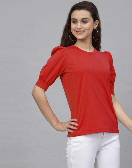 Beautiful Red Coloured Plain Crepe Tops