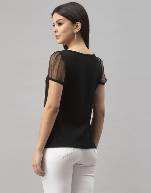 Dazzling Black Coloured Knitted Lycra Tops