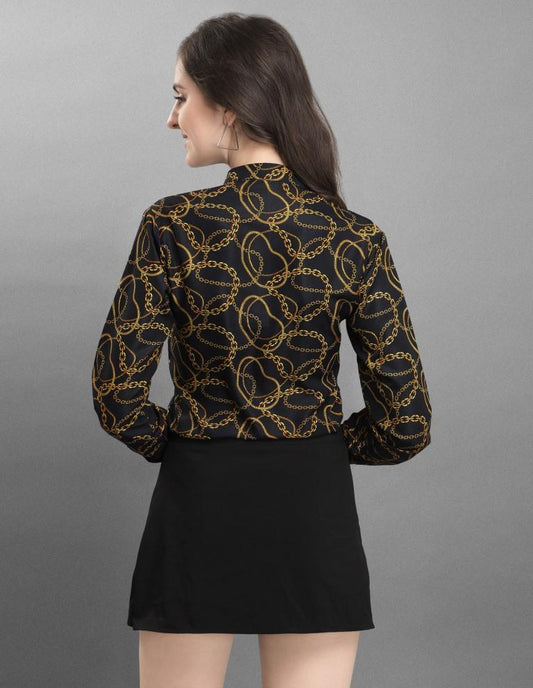 Sparkling Black Coloured Printed Crepe Tops