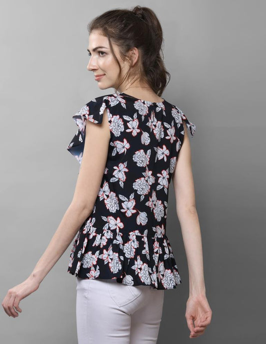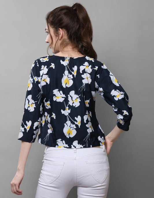 Blissful Navy Blue Coloured Printed Crepe Tops