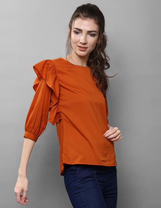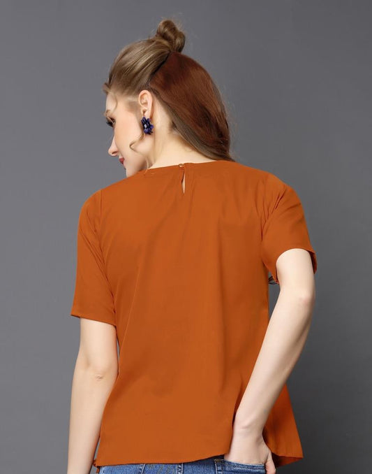 Stylish Rust Coloured Plain Crepe Tops