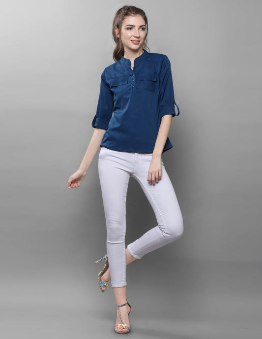 Regular price Rs. 329.00Regular priceUnit price / perRs. 0.00Sale price Rs. 329.00Picturesque Navy Blue Coloured Plain Crepe Tops