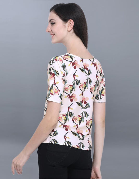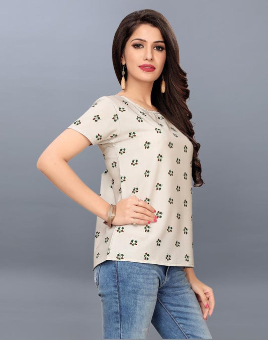 Distinctive Off White Coloured Printed Crepe Tops