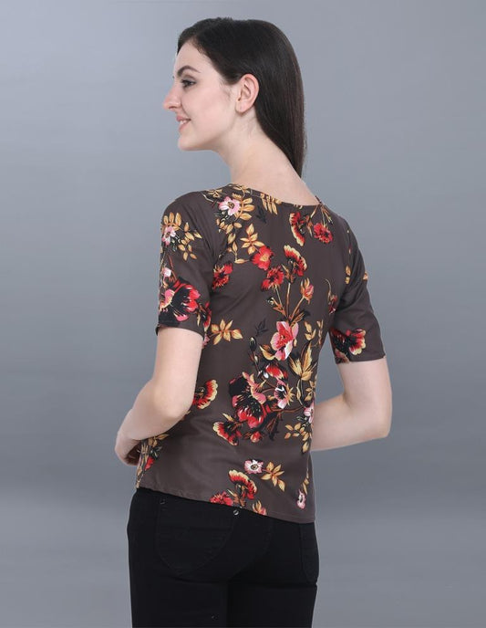 Ambitious Brown Coloured Printed Crepe Tops