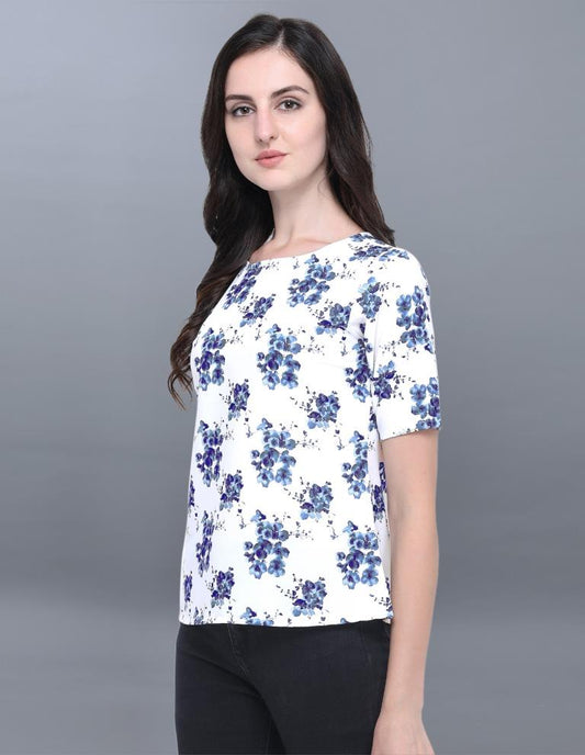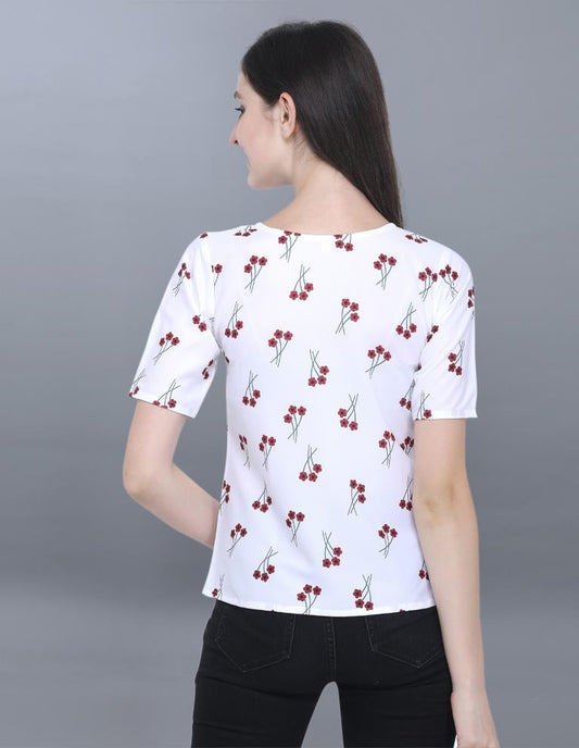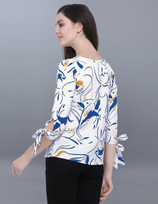 Enriching White Coloured Printed Crepe Tops