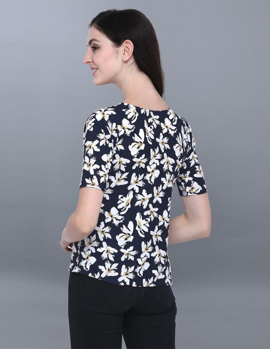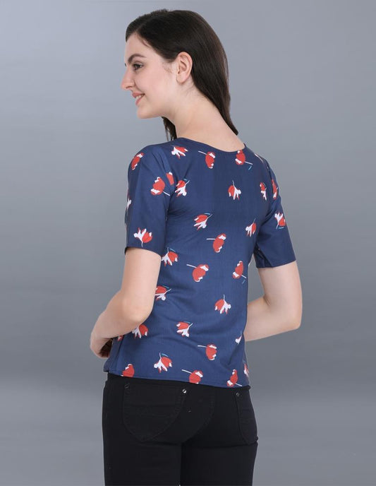 Classic Blue Coloured Printed Crepe Top