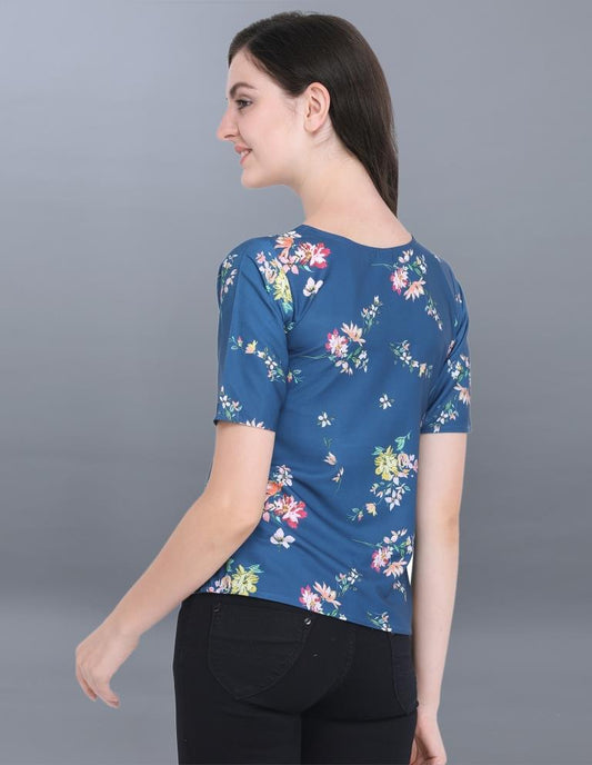 Alluring Blue Coloured Printed Crepe Top