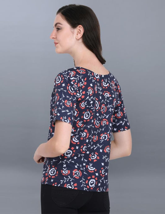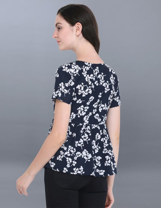 Aesthetic Navy Blue Coloured Printed Crepe Tops