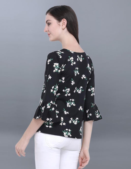 Fantastic Black Coloured Printed Crepe Tops