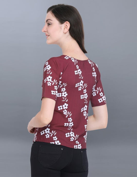 Trendy Maroon Coloured Printed Crepe Tops