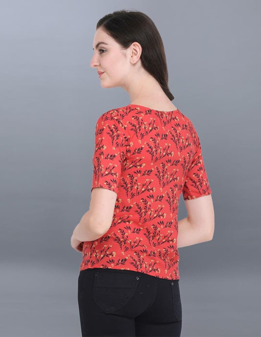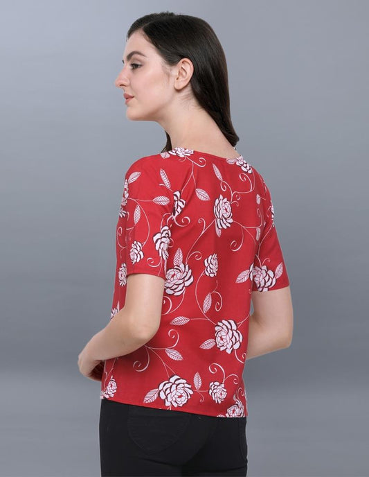 Exuberant Red Coloured Printed Crepe Tops