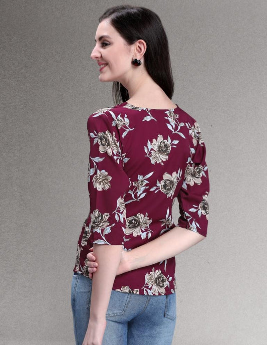 Appealing Maroon Coloured Printed Crepe Tops