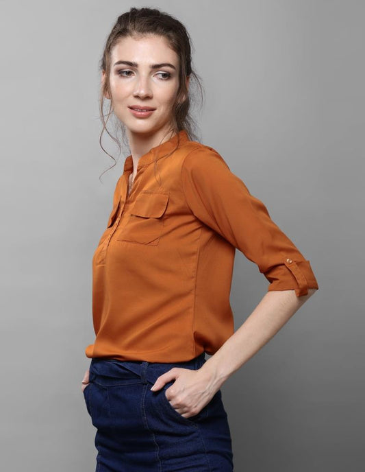 Bewitching Rust Coloured Plain Crepe Tops