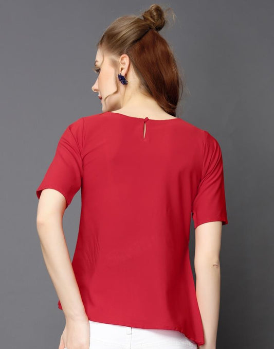 Modish Red Coloured Plain Crepe Tops