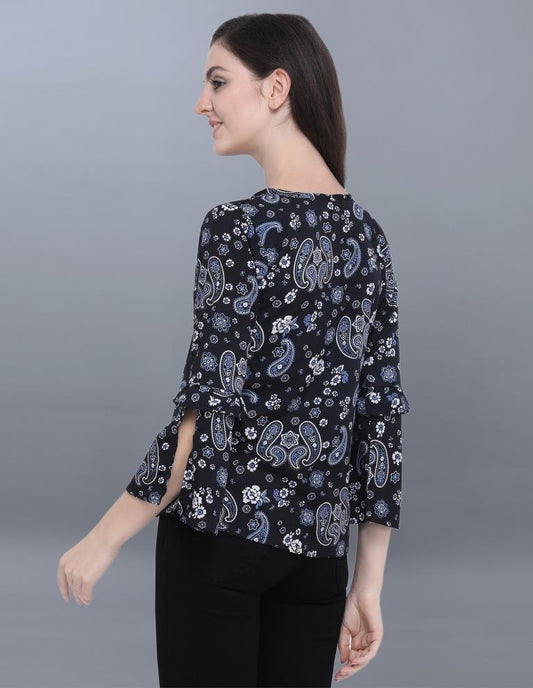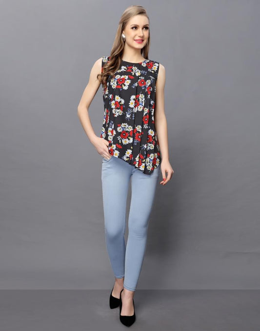 Beauteous Black Coloured Printed Crepe Tops