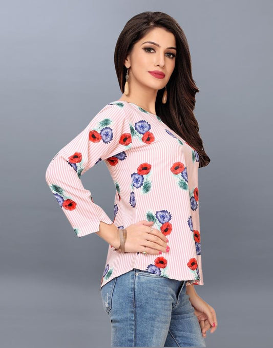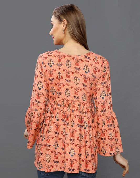 Dashing Peach Coloured Printed Rayon Tops