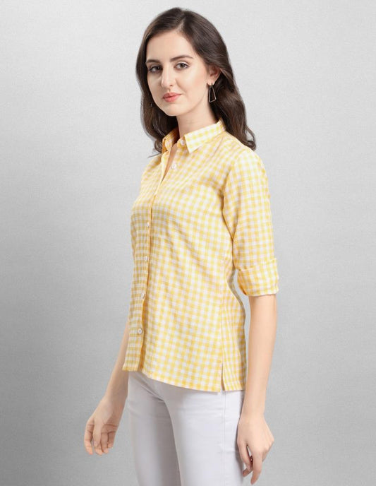 Precious Yellow Coloured Woven Checks Poly Cotton Shirt