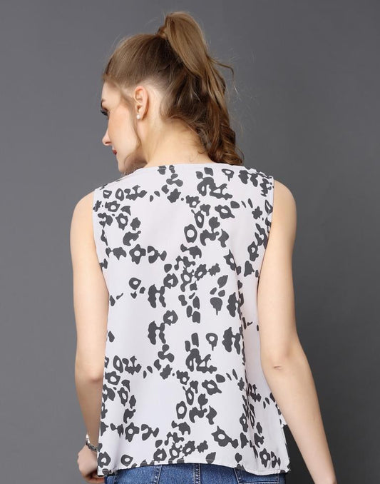 Ambitious White Coloured Printed Crepe Tops