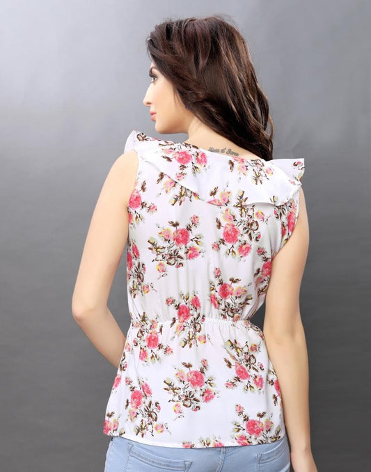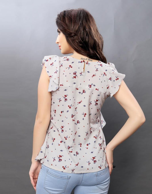 Enthralling Off White Coloured Printed Crepe Tops