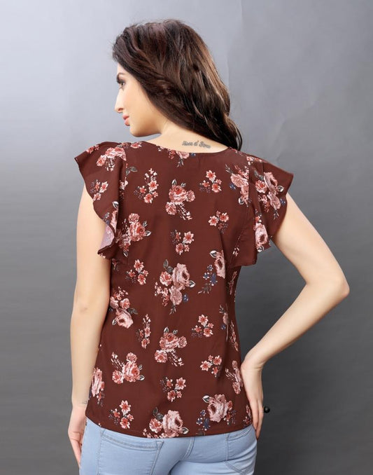 Engrossing Rust Coloured Printed Crepe Tops