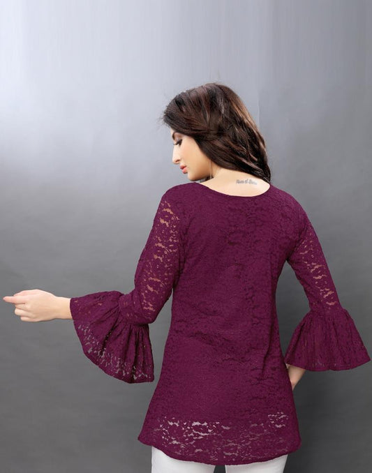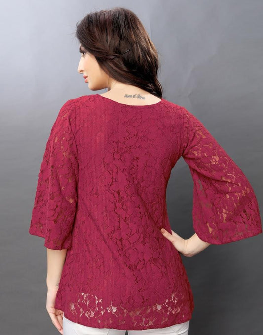 Divine Maroon Coloured Net Russell Net Tops