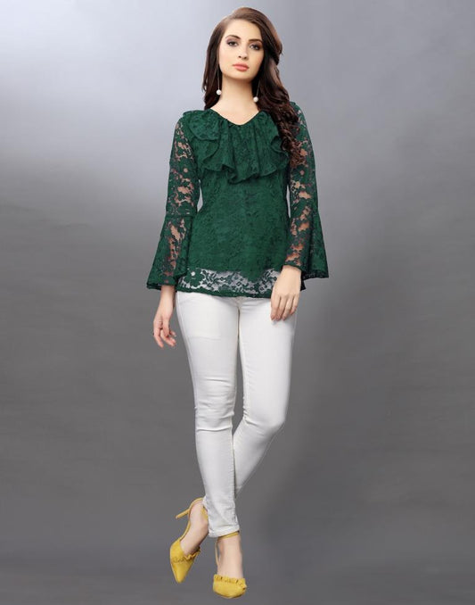 Alluring Green Coloured Net Russell Net Tops