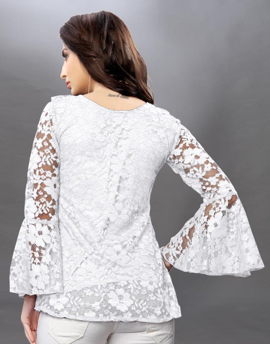 Alluring White Coloured Net Russell Net Tops