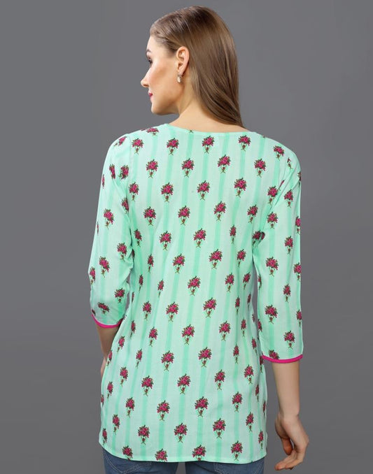 Adorable Aqua Green Coloured Printed Rayon Tops