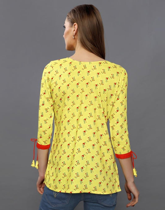 Breezy Yellow Coloured Printed Rayon Tops
