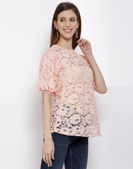 Regular price Rs. 549.00Regular priceUnit price / perRs. 0.00Sale price Rs. 549.00Peach Coloured Plain Russell Net Top