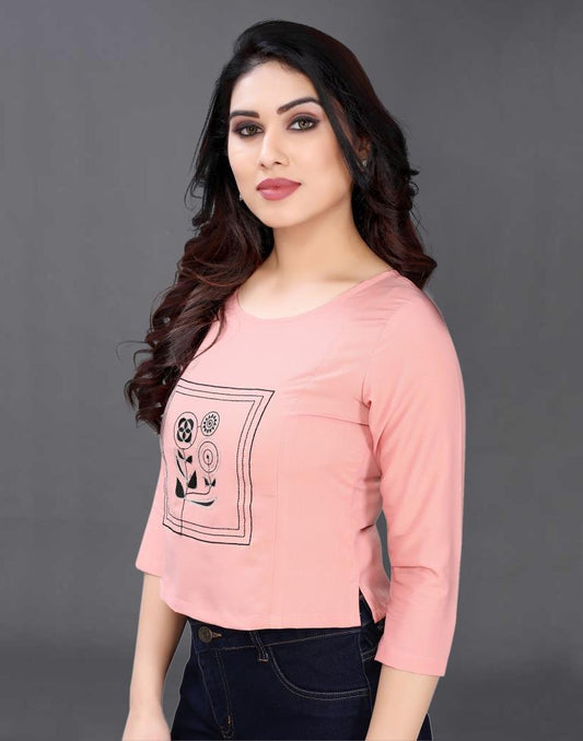 Rose Pink Coloured Embroidered Crepe Crop Top
