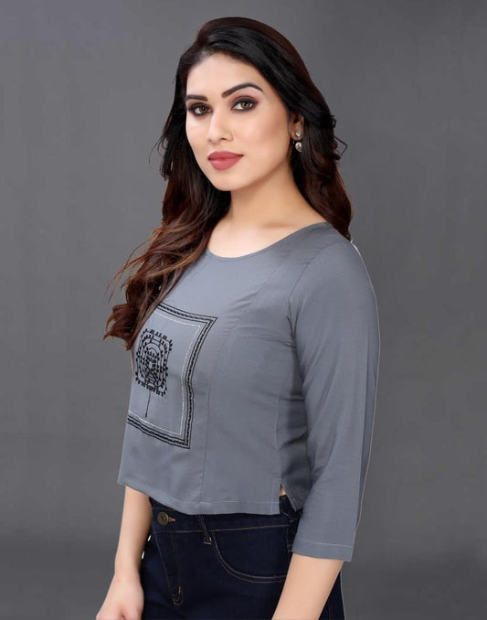 Regular price Rs. 349.00Regular priceUnit price / perRs. 0.00Sale price Rs. 349.00Grey Coloured Embroidered Crepe Crop Top