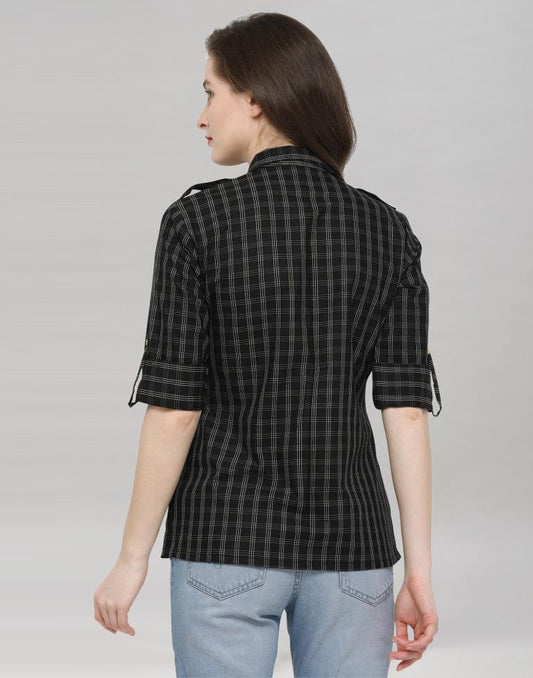 Regular price Rs. 439.00Regular priceUnit price / perRs. 0.00Sale price Rs. 439.00Black Coloured Cotton Woven Checks Casual Top