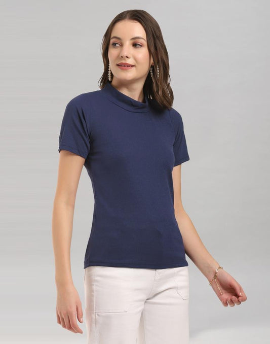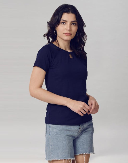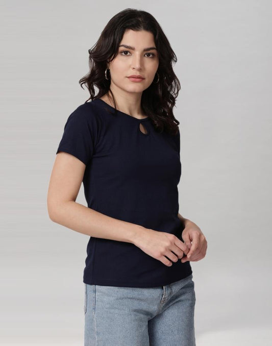 Navy Blue Coloured Lycra Knitted T-shirt