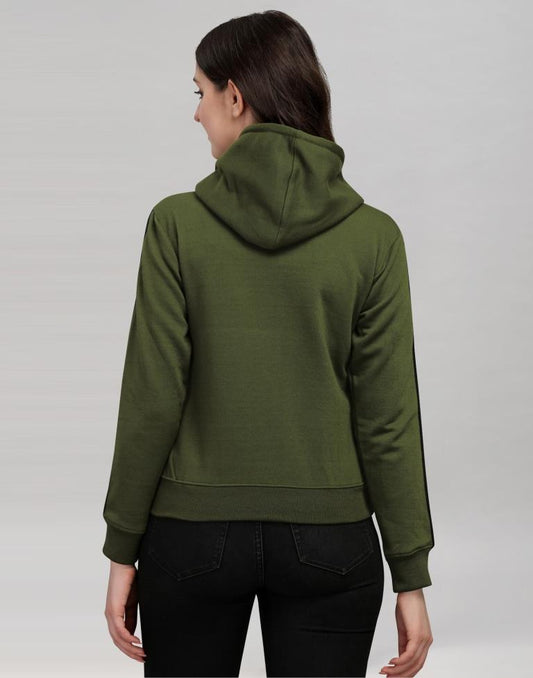 Dark Olive Green Coloured Cotton Fleece Blend Plain Hoodie
