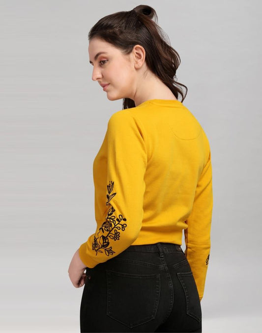Turmeric Yellow Coloured Cotton Fleece Blend Embroidered Sweatshirt