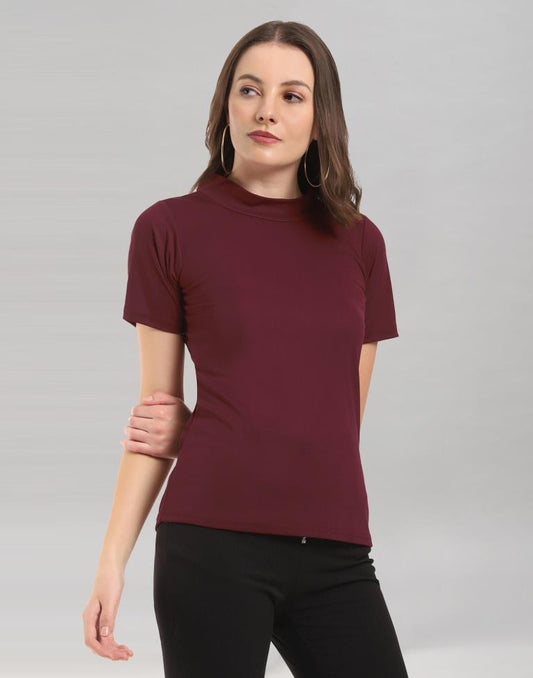 Maroon Coloured Lycra Knitted T-shirt