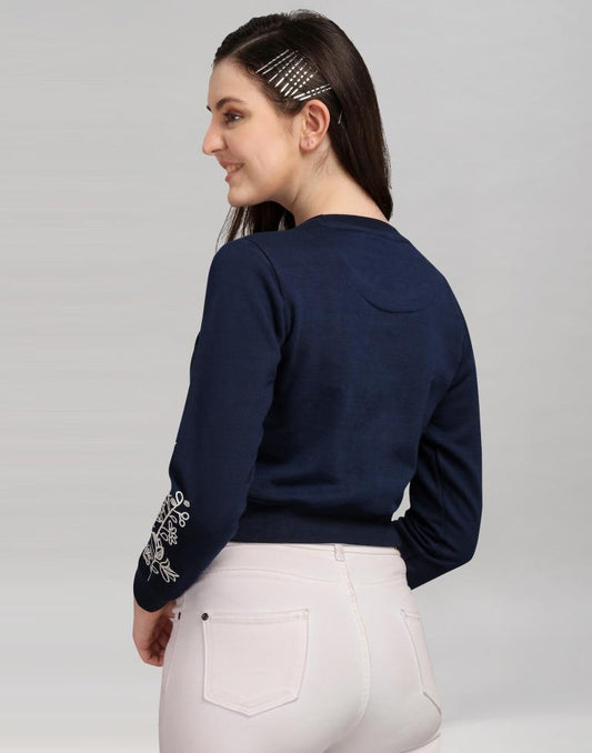 Regular price Rs. 829.00Regular priceUnit price / perRs. 0.00Sale price Rs. 829.00Navy Blue Coloured Cotton Fleece Blend Embroidered Sweatshirt