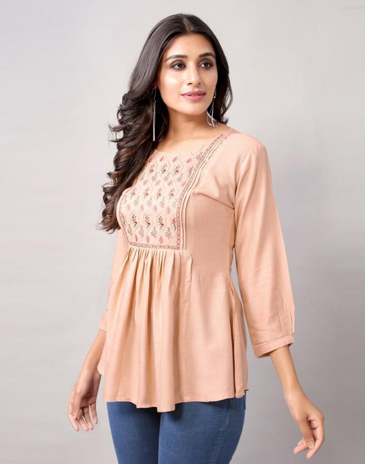 Regular price Rs. 579.00Regular priceUnit price / perRs. 0.00Sale price Rs. 579.00Light Brown Colored Diva Slub Mill Dyed Top