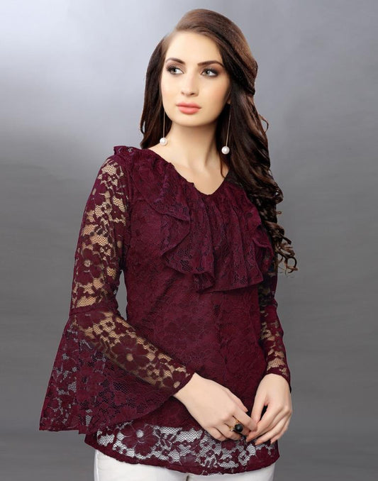 Beguiling Maroon Coloured Net Russell Net Tops