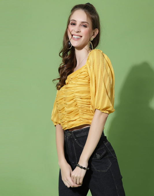 Regular price Rs. 519.00Regular priceUnit price / perRs. 0.00Sale price Rs. 519.00Yellow Ruched Smocked Top