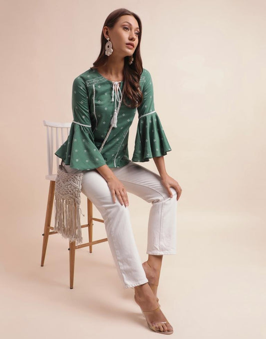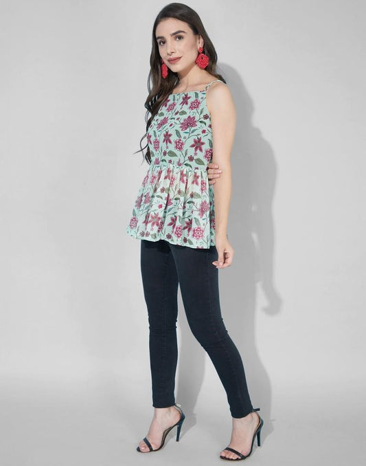 Regular price Rs. 499.00Regular priceUnit price / perRs. 0.00Sale price Rs. 499.00Green Chinnon Printed Top