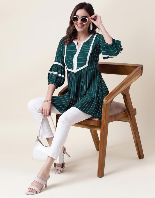 Regular price Rs. 539.00Regular priceUnit price / perRs. 0.00Sale price Rs. 539.00Teal Green Cotton Woven Tunic Top