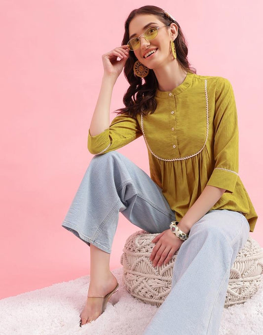 Regular price Rs. 599.00Regular priceUnit price / perRs. 0.00Sale price Rs. 599.00Musterd Yellow Self Woven Tunic Top