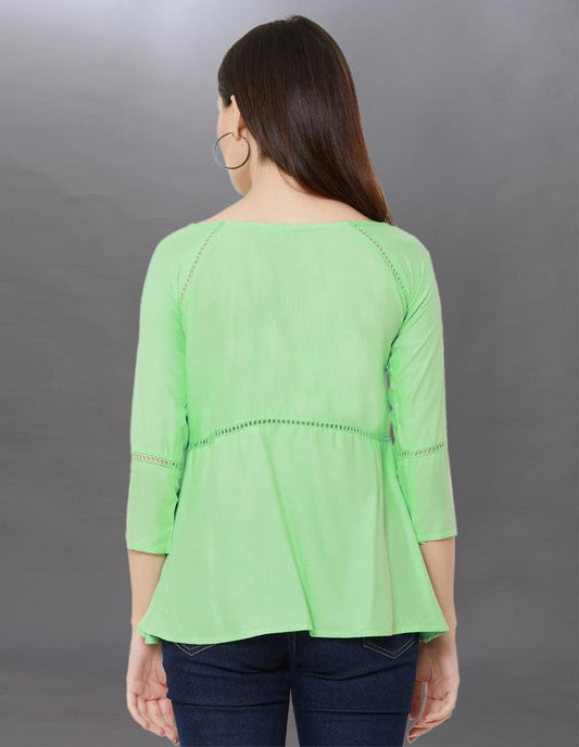 Bedazzling Light Sea Green Coloured Pleated Rayon Top