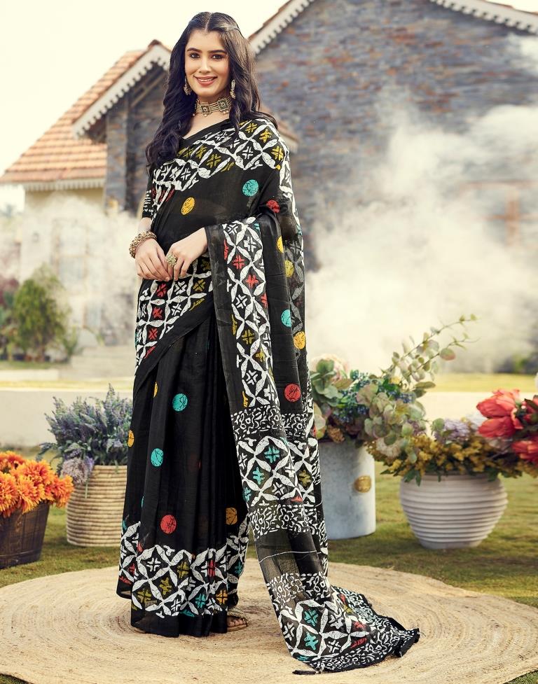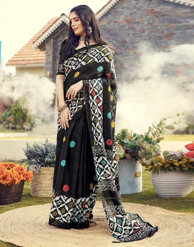 Ready to Wear Black Cotton Printed Saree