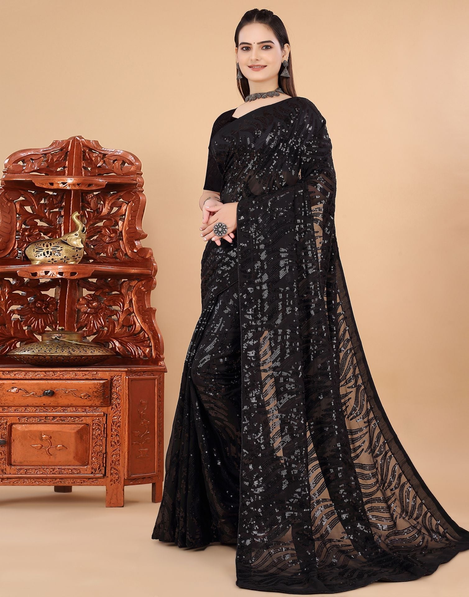 Black Plain Georgette Saree