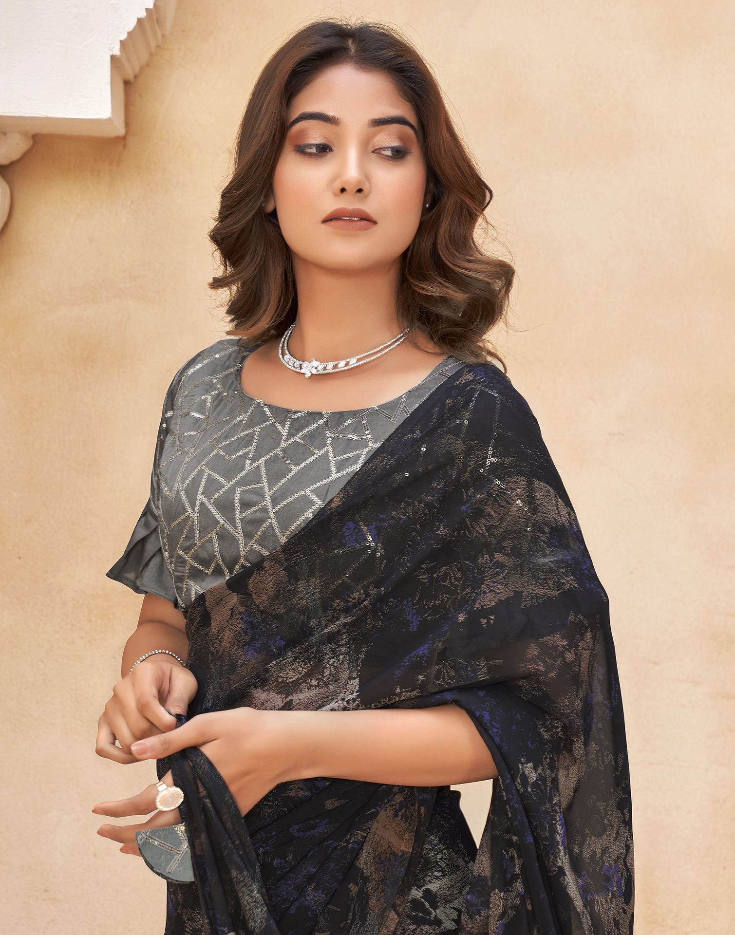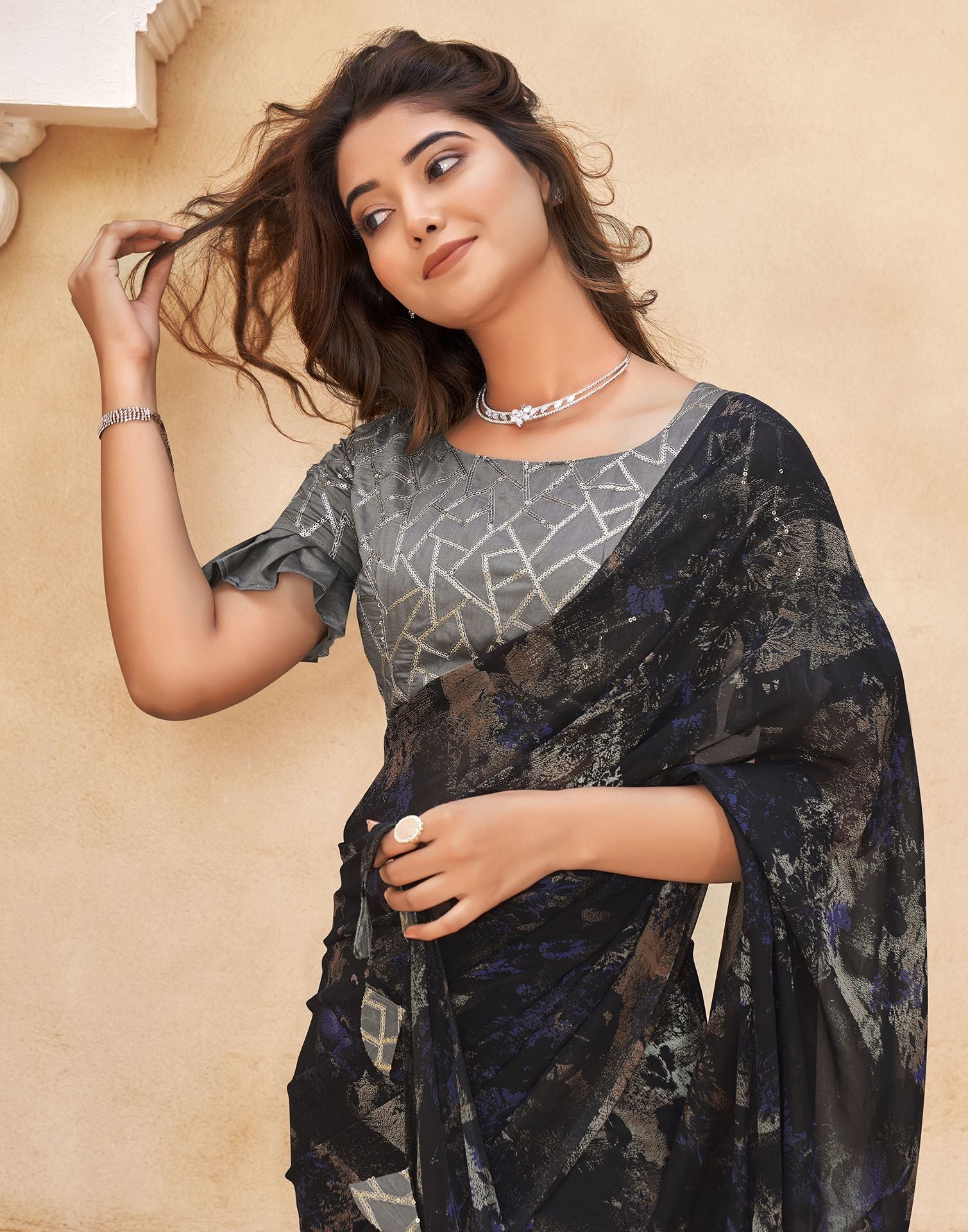 Black Printed Georgette Saree
