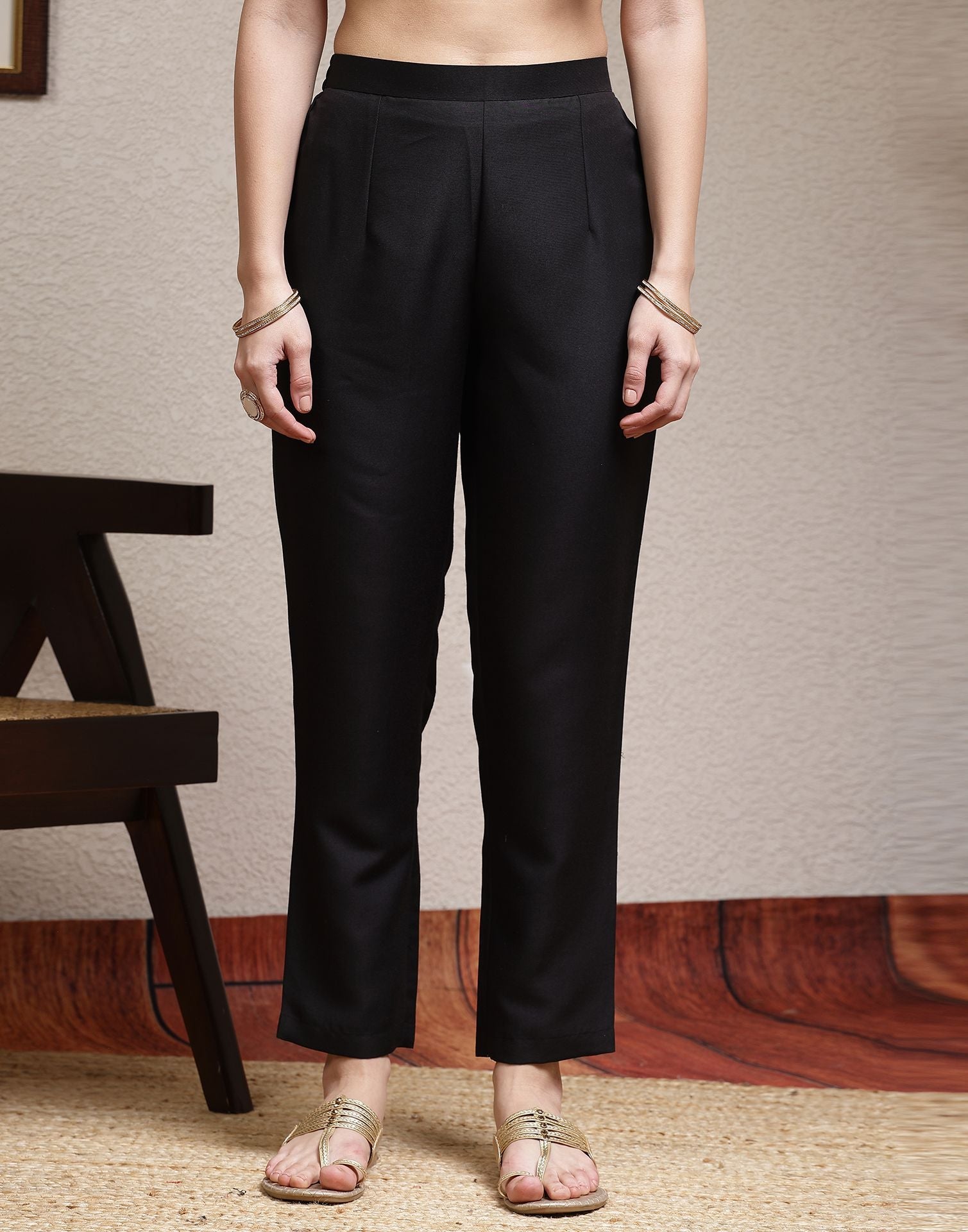 Black Printed Rayon Straight Kurta Set With Dupatta