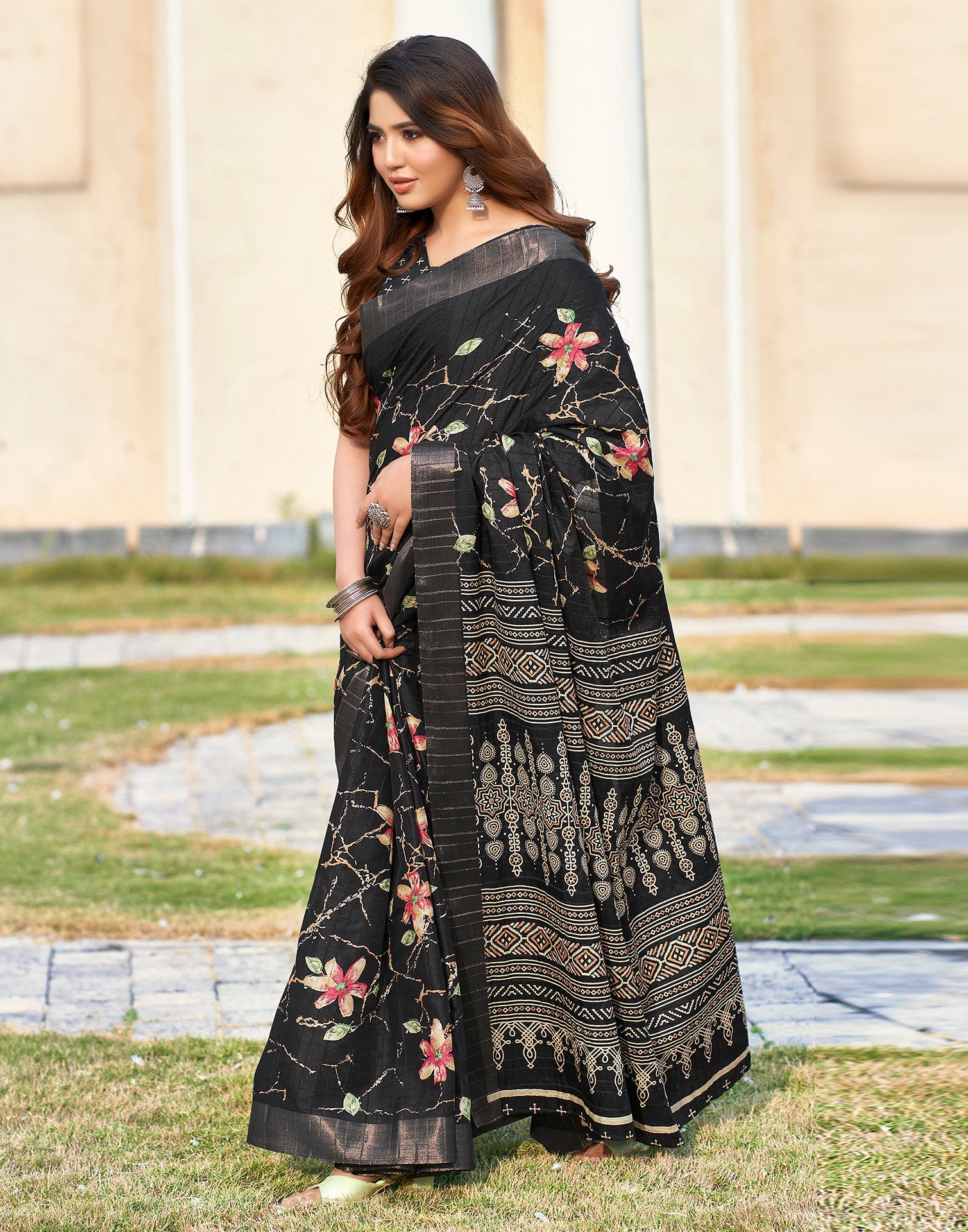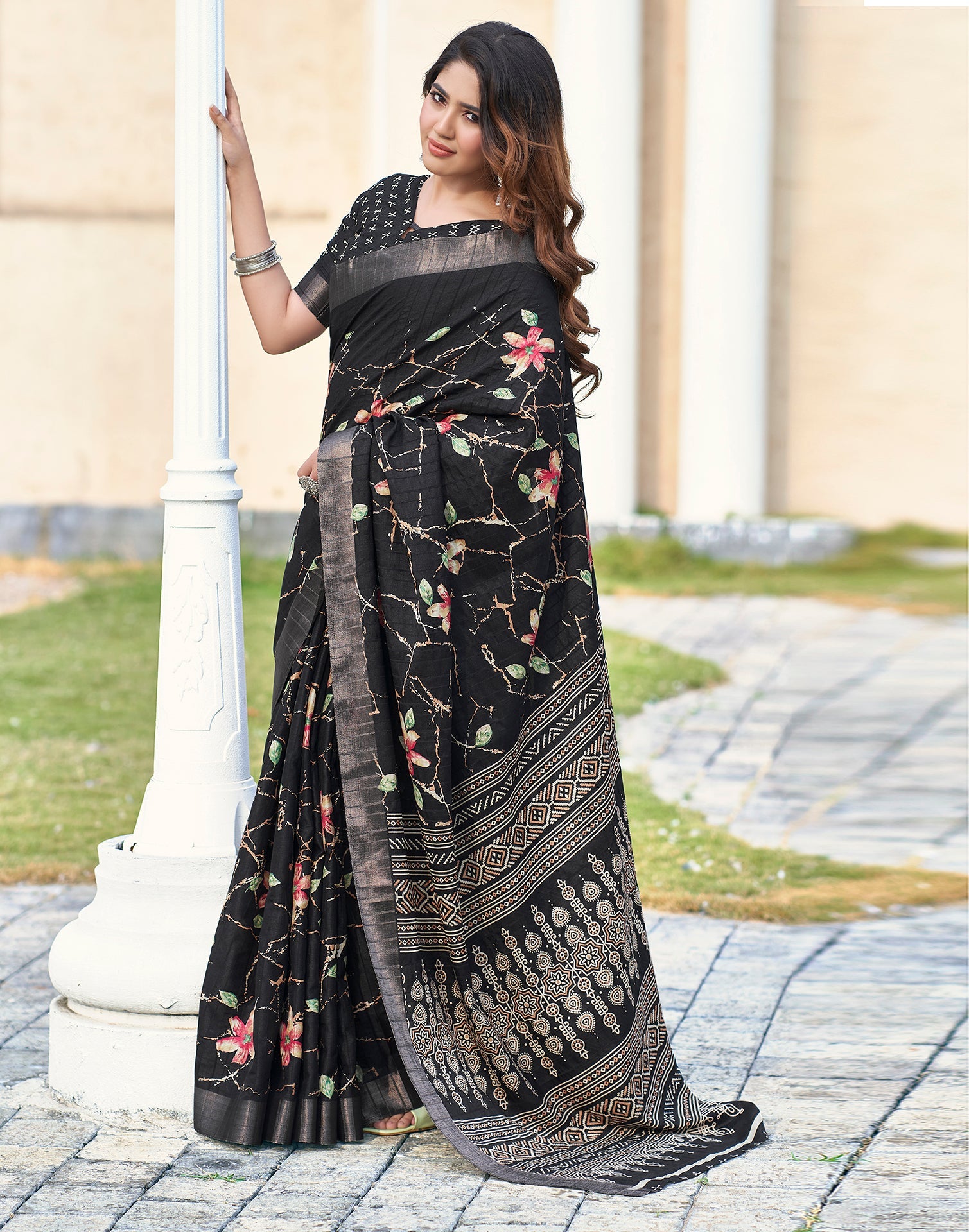 Black Silk Printed Saree